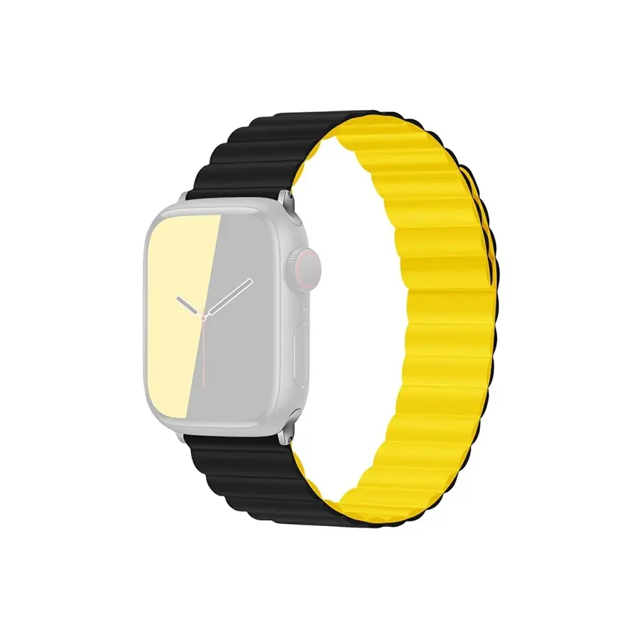 Smart Watch Strap TVC KALEBOL Magnetic Watch Band for Apple Watch Series 10 9 8 7 SE 6 5 4 3 2 1 42mm 41mm 40mm 38mm Silicone Adjustable Strap - Black Yellow