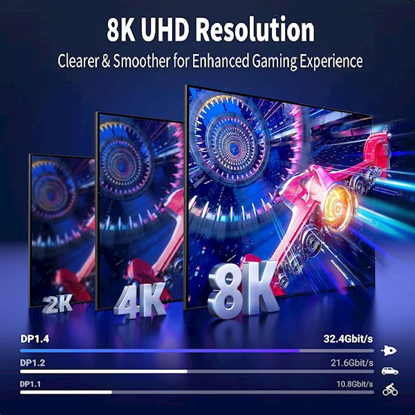 - Supports 7680*4320@60Hz, 3840*2160@240Hz
