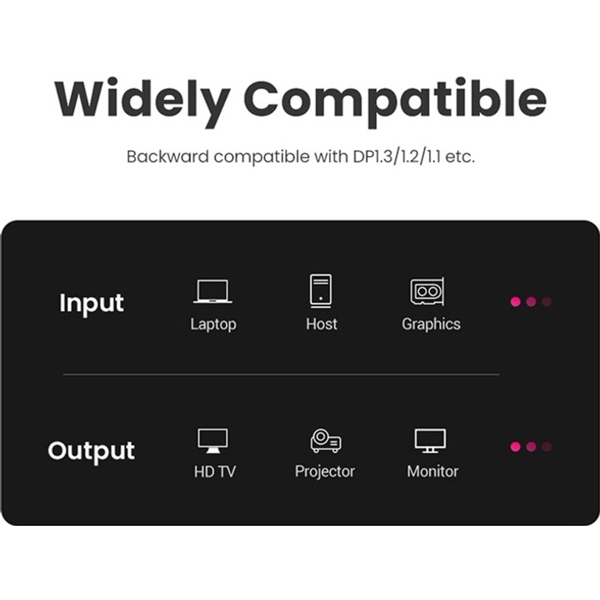 UGREEN DP114 (80393) 8K DisplayPort to DisplayPort Cable is a high-quality and reliable solution for video and audio transmission. The cable supports 8K resolution (7680x4320) and 60Hz refresh rate, which provides the highest image quality and smoothness. The 3-meter length is optimal for connecting devices at home or in the office. Its solid and durable design ensures long-term use, and the Plug-and-Play function allows you to easily install. The black color and elegant style of the cable perfectly fit into any technical environment.