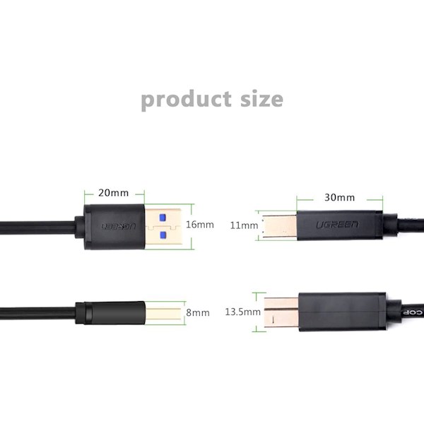 Printer cable UGREEN US210 (10372) USB-B 3.0 Type B to Type A Print Cable 2m (Black)