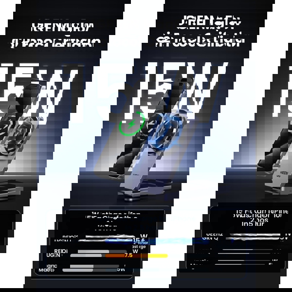 UGREEN W706 (45023) MagFlow Qi2, 15W, 2-in-1 Magnetic Wireless Charger, Grey