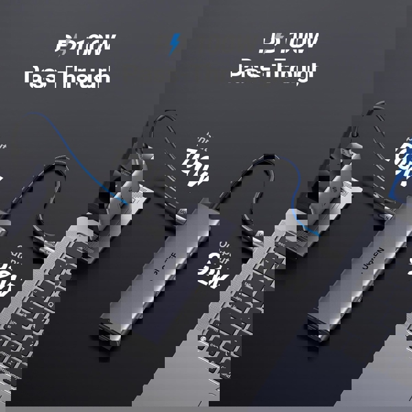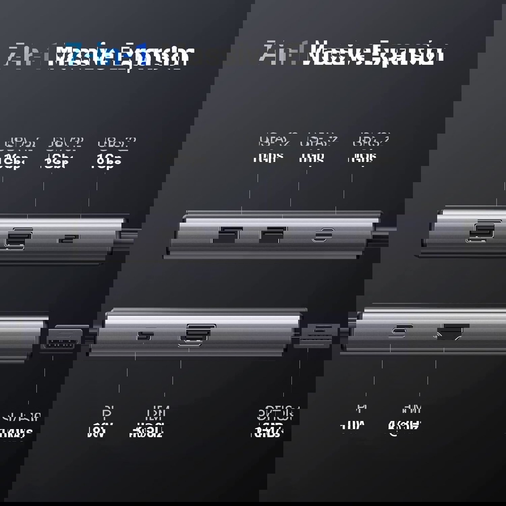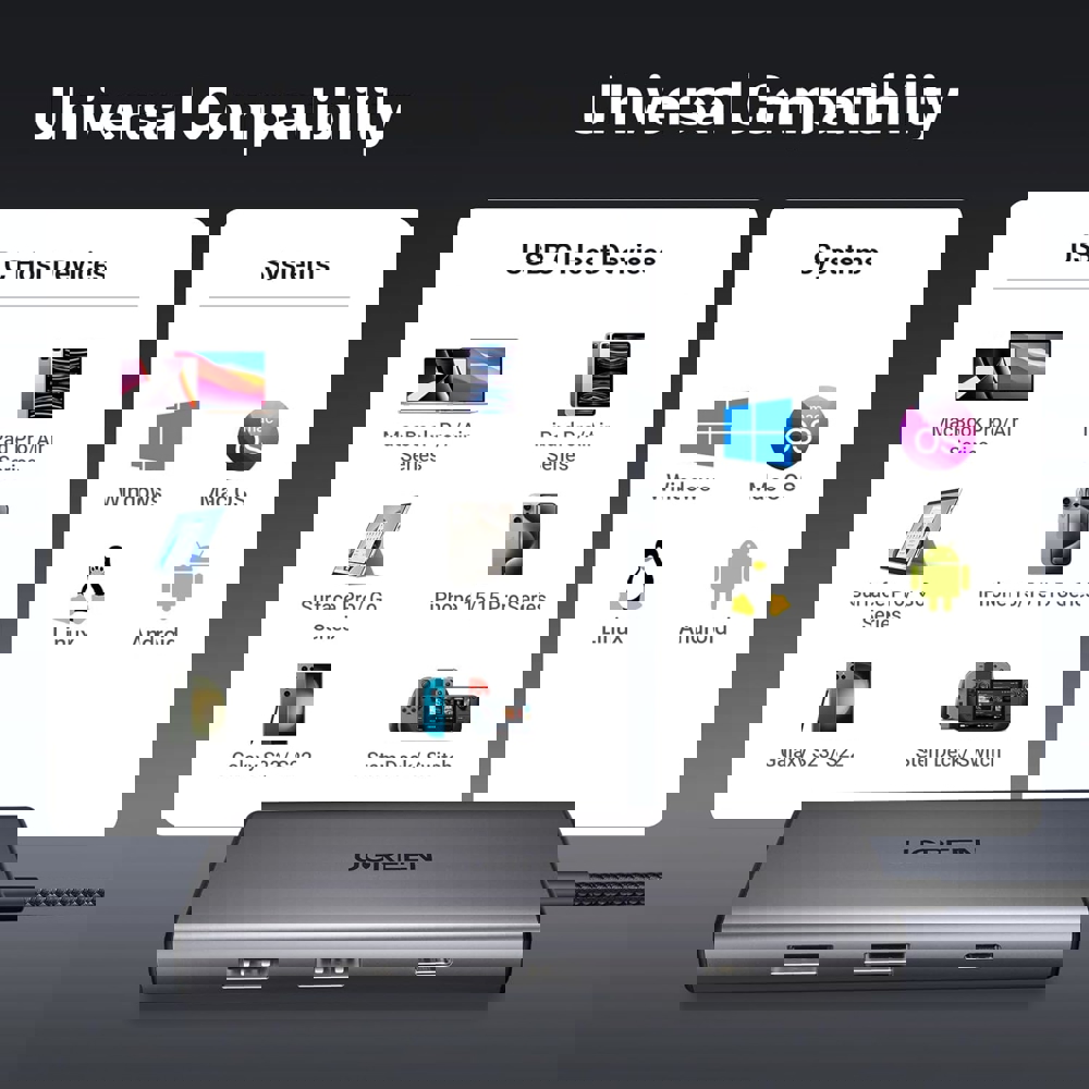 UGREEN CM498 Revodok Pro 107 is a compact and powerful outdoor device hub that creates 7 different interfaces from a single USB-C port. The 10 Gbps speed is beneficial for quick transfers, while additional USB-A ports (2×) are convenient for connecting keyboards, mice, flash drives, and other devices. The 4K@30Hz HDMI port provides high-quality output to external monitors. The USB-C PD port allows you to charge your laptop with 100 W while functioning simultaneously. The SD and micro-SD card reader helps you avoid cluttering your desktop with card readers. The sturdy metal casing and durable design (weight ~176 g, dimensions 110×195×18 mm) make it ideal for both travel and constant use in the office. UGREEN's reliability and the Revodok Pro series combine efficiency, versatility, and comfort in everyday and professional workflows.
