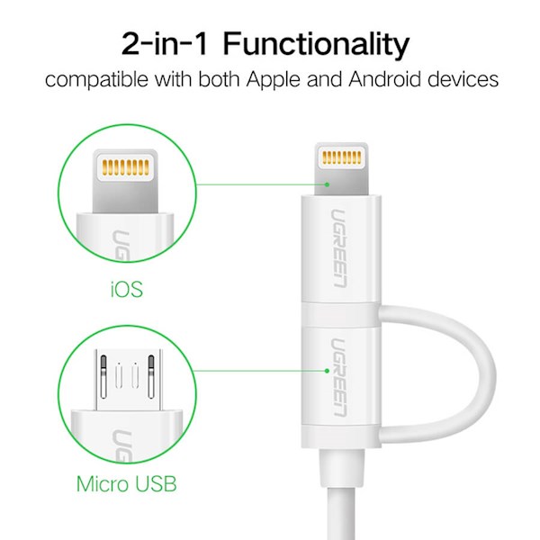 USB cable UGREEN US178 (20876) USB 2.0 to Micro USB + Lightning (2 in 1) Data Cable 1M