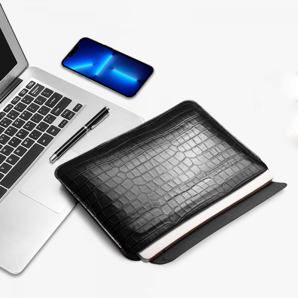 WiWU 13.3'' Skin Croco Genuine Leather Sleeve Black is a premium quality laptop bag made from natural leather, combining elegant style with outstanding protection. The Croco texture design gives the bag a unique appearance and highlights its high quality. The interior of the bag is lined with soft material, protecting the laptop from scratches and impacts. It is designed for 13.3-inch laptops and is ideal for both business environments and everyday use. A snug fit and lightweight construction ensure convenience while on the move. The WiWU Croco Leather Sleeve is the perfect blend of sophistication, protection, and comfort.