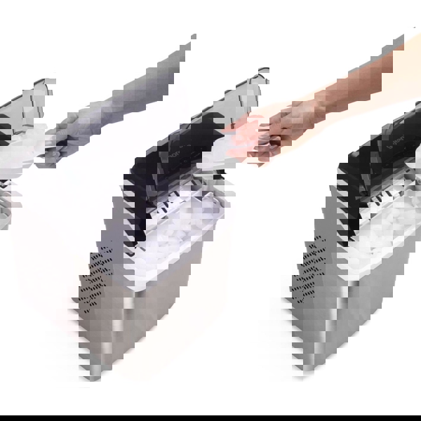 GORENJE IMD1200SB არის კომპაქტური და ეფექტური ყინულის აპარატი, რომელიც იდეალურია როგორც სახლის, ისე ოფისის ან გარე ღონისძიებებისთვის. მოწყობილობა დღეში აწარმოებს 12 კგ-მდე ყინულს, რაც უზრუნველყოფს მუდმივ მარაგს ცივი სასმელებისთვის. 1.3 ლიტრიანი წყლის რეზერვუარი და 9 წუთიანი ციკლი საშუალებას გაძლევთ სწრაფად მიიღოთ ყინულის კუბები. აპარატს აქვს ორი ზომის ყინულის კუბების არჩევის ფუნქცია, რაც უზრუნველყოფს მრავალფეროვან გამოყენებას. ჩაშენებული ინდიკატორები აცნობებენ წყლის ნაკლებობას ან ყინულის კონტეინერის სავსეობას. მისი ელეგანტური შავი და ვერცხლისფერი დიზაინი მარტივად ერწყმის ნებისმიერ ინტერიერს.
