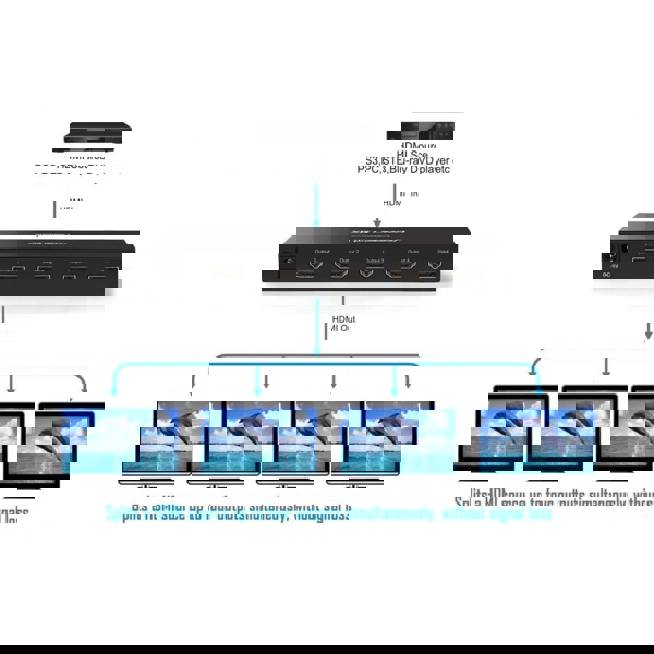 - გამომავალი: 4 HDMI პორტი