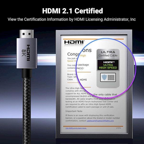 HDMI კაბელი UGREEN HD171 (25911) არის მაღალი ხარისხის და გამძლე 8K HDMI to HDMI კაბელი, რომელიც უზრუნველყოფს სუფთა და დეტალურ გამოსახულებას. მისი მხარდაჭერა 8K@60Hz და 4K@120Hz გარჩევადობისთვის იდეალურია როგორც გეიმინგისთვის, ასევე მაღალი ხარისხის ვიდეოებისა და პრეზენტაციებისთვის. კაბელის 3 მეტრის სიგრძე გაძლევთ დამატებით მოქნილობას მოწყობილობების დაკავშირებისას. UGREEN HD171 გამოირჩევა გამძლე კონსტრუქციით და ელეგანტური ნაცრისფერი დიზაინით, რაც უზრუნველყოფს ხანგრძლივ მომსახურებას. კაბელი თავსებადია სხვადასხვა მოწყობილობასთან, მათ შორის ტელევიზორებთან, მონიტორებთან და პროექტორებთან.