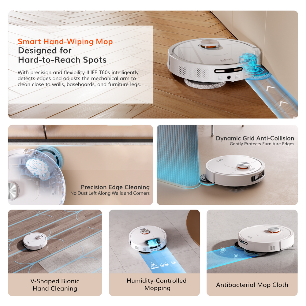 რობოტი მტვერსასრუტი Ilife T60S წარმოადგენს უახლეს ტექნოლოგიებზე დაფუძნებულ დასუფთავების მოწყობილობას, რომელიც აერთიანებს მაღალ შეწოვის ძალას და ჭკვიან მენეჯმენტს. 17000Pa-ს სიმძლავრე უზრუნველყოფს მტვრის, თმისა და ნაწილაკების ეფექტურად მოცილებას როგორც ხისტი იატაკებიდან, ასევე ხალიჩებიდან. ჩაშენებული LiDAR სანავიგაციო სისტემა და ხელოვნური ინტელექტი (AI) საშუალებას აძლევს მტვერსასრუტს ზუსტად შეისწავლოს სივრცე, დაგეგმოს მარშრუტი და თავი აარიდოს დაბრკოლებებს. მოწყობილობა დამოუკიდებლად ბრუნდება დამტენ სადგურზე, ასევე გააჩნია მრავალმხრივი რეჟიმები სხვადასხვა ტიპის სისუფთავისთვის. თეთრი მინიმალისტური დიზაინით ის იდეალურად ერგება ნებისმიერ ინტერიერს. Ilife T60S არის თანამედროვე სახლის გამარტივებული და მაღალეფექტური სისუფთავის გადაწყვეტა.
