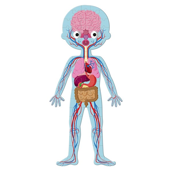 4 გიგანტური თავსატეხი თემაზე - ადამიანის სხეული: 1 თავსატეხი ორმხრივი თავსატეხი ბიჭი / გოგო (50 ელ.); 1 ორგანოს სასწავლო თავსატეხი (75 ელ.). 1 ჩონჩხის თავსატეხი (100 ელ.). თავსატეხებს აწყობილი ფორმა აქვს 1 მეტრის სიმაღლე და ეხმარება ბავშვებს უკეთ გაიგონ ადამიანის სხეული. თავსატეხი მოიცავს დეტალურ საგანმანათლებლო რუქებს, რათა გაეცნოთ ადამიანის სხეულის სხვადასხვა ნაწილს. რეკომენდებული ასაკი: 5 + ზომა: 45 x 100 სმ.