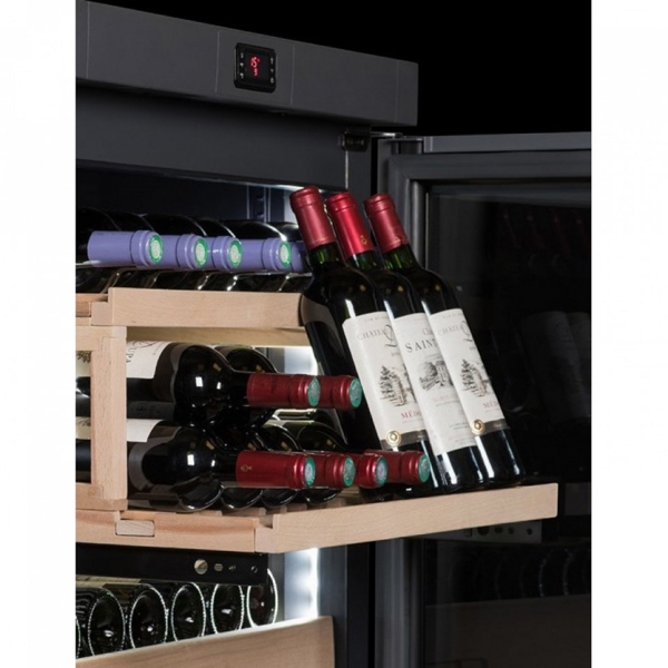 მაცივარი აღჭურვილია რეგულირებადი თაროებით, რაც სხვადასხვა ზომის ბოთლების მოქნილ განლაგებას შესაძლებელს ხდის. მისი ინოვაციური ტემპერატურის კონტროლის სისტემა ღვინოს უნარჩუნებს სტაბილურ ტემპერატურასა და ტენიანობას, რაც აუცილებელია არომატისა და ხარისხის შესანარჩუნებლად. დაბალი ვიბრაციისა და ხმაურის ტექნოლოგია ხელს უწყობს ღვინის იდეალურ მდგომარეობაში შენახვას.