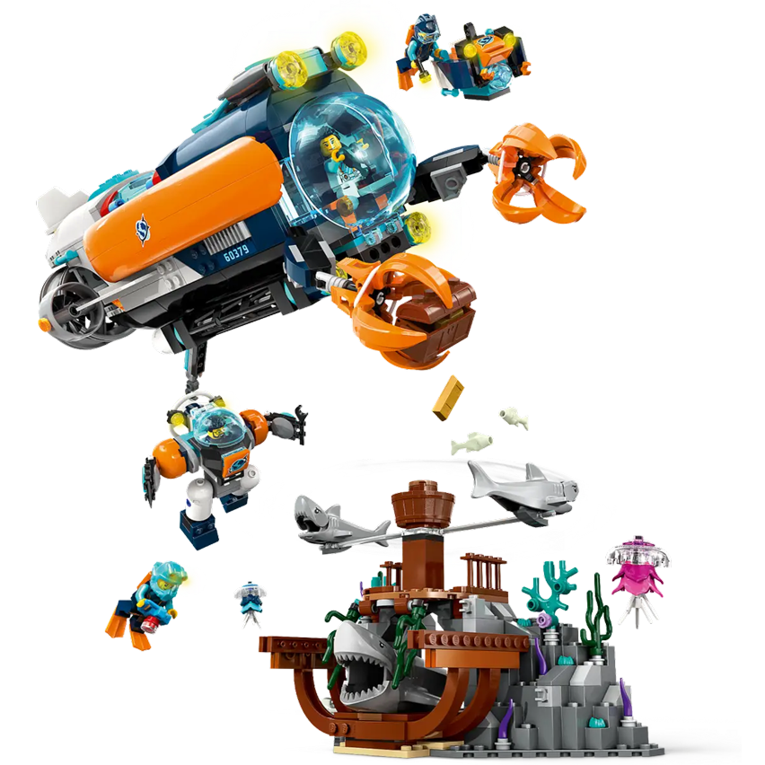 - მოიცავს: წყალქვეშა ნავი, დრონი, მყვინთავის კოსტუმი, გემის ჩაძირვის ადგილი, 6 მკვლევარის მინიფიგურა, 1 ჩონჩხი, 3 ზვიგენი, 2 მედუზა და 4 თევზის ფიგურა