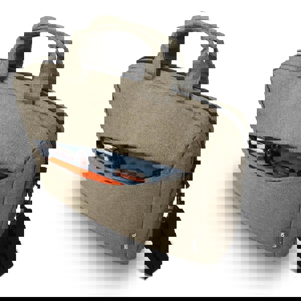 Lenovo T210 Casual Toploader (GX40Q17228) 15.6" ლეპტოპის ჩანთა წარმოადგენს თანამედროვე და ფუნქციურ აქსესუარს, რომელიც იდეალურია როგორც პროფესიონალური, ისე ყოველდღიური გამოყენებისთვის. დამზადებულია მაღალი ხარისხის წყალგაუმტარი პოლიესტერის მასალისგან, რაც იცავს თქვენს ტექნიკას სითხისა და მექანიკური დაზიანებებისგან. ჩანთას აქვს რბილი ლეპტოპის განყოფილება, რომელიც თავსებადია 15.6 დიუმიან მოდელებთან, ასევე დამატებითი შიდა ჯიბეები აქსესუარებისა და პირადი ნივთების მოსათავსებლად. ერგონომიული დიზაინი, მსუბუქი წონა (435 გ) და რეგულირებადი თასმები უზრუნველყოფს კომფორტულ ტარებას ხანგრძლივი დროის განმავლობაში. მწვანე ფერი და მინიმალისტური სტილი ჩანთას ანიჭებს ელეგანტურ იერს.