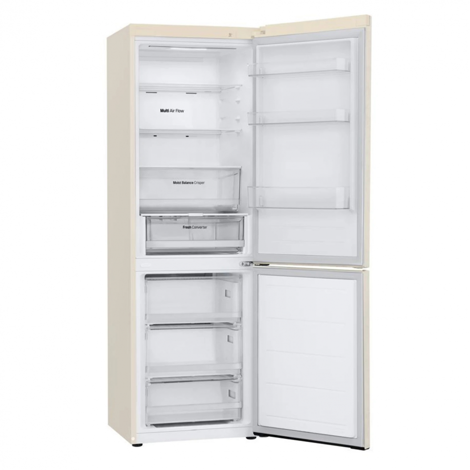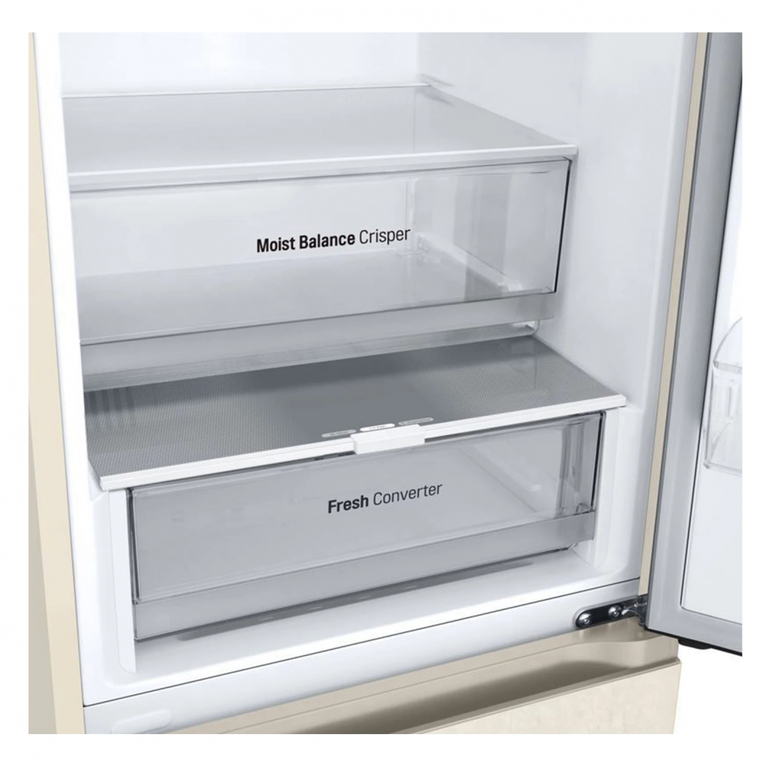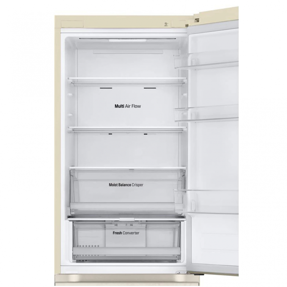 LG GR-B509FVFW არის 384 ლიტრი ტევადობის ორკამერიანი მაცივარი, რომელიც გამოირჩევა ინვერტორული ძრავით, რაც უზრუნველყოფს ენერგოეფექტურობასა და ხანგრძლივ გამძლეობას. No Frost ტექნოლოგია ხელს უშლის ყინულის დაგროვებას, რაც ამარტივებს მოვლას და ინარჩუნებს პროდუქტების სიჯანსაღეს. Multi-Air Flow სისტემა უზრუნველყოფს ჰაერის თანაბარ განაწილებას მაცივრის შიგნით, რაც ინარჩუნებს სტაბილურ ტემპერატურას და პროდუქტების სიგრილეს. FRESHBalancer™ ტექნოლოგია ინარჩუნებს ტენიანობის ოპტიმალურ დონეს ხილისა და ბოსტნეულისთვის, რაც ახანგრძლივებს მათ სიჯანსაღეს. Wine Rack ფუნქცია საშუალებას გაძლევთ კომფორტულად შეინახოთ ღვინის ბოთლები. მაცივრის ზომებია 203 სმ სიმაღლე, 59.5 სმ სიგანე და 67.6 სმ სიღრმე, რაც უზრუნველყოფს მის მარტივ განთავსებას ნებისმიერ სამზარეულოში. კრემისფერი დიზაინი კი თანამედროვე იერსახეს ანიჭებს თქვენს ინტერიერს.