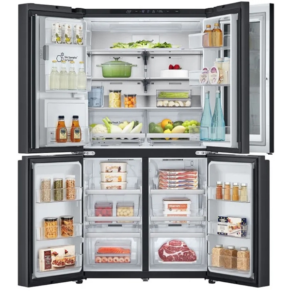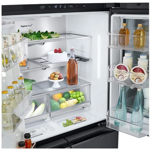 LG GR‑X24FFCAB.AEVQMER არის ელეგანტური Side‑by‑Side ტიპის 571 ლ მოცულობის მაცივარი, ენერგოეფექტურობით A+. No Frost ტექნოლოგია უზრუნველყოფს მიყინვის გარეშე შენახვას და მარტივად გაწმენდას. ინვერტორული Linear კომპრესორი უზრუნველყოფს ენერგიის დაზოგვას და ხმაურის მინიმუმს. InstaView Door‑in‑Door ჭკვიანი კარის სისტემა საშუალებას გაძლევთ დაათვალიეროთ შიდა სივრცე კარების გახსნის გარეშე – ჰაერის სიცივე აღარ დაკარგება. UVnano ტექნოლოგია აბაქტერიული წყლის დისპენსერისთვის უზრუნველყოფს ჰიგიენურ გამოყენებას. ThinQ პლატფორმა Wi‑Fi მხარდაჭერით აწვდის დისტანციურ კონტოლსა და Smart Diagnosis ფუნქციას. ნარჩენი სასურსათე სივრცე ორგანიზებულია მინის თაროებით, 6 ყუთით და Multi‑Air Flow სისტემით, რაც უზრუნველყოფს ერთგვაროვან ტემპერატურას.