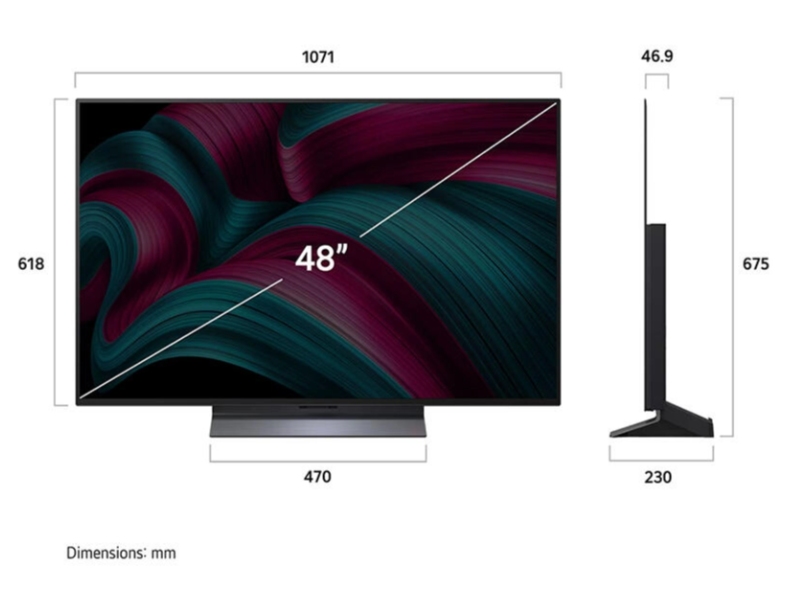 - ზომები სადგამის გარეშე: 1071 x 618 x 46.9 mm