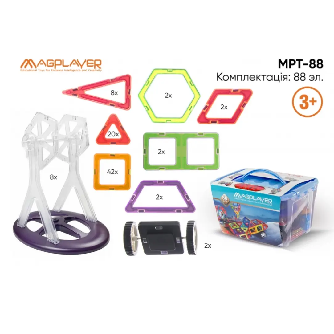 მაგნიტური კონსტრუქტორი Magplayer magnetic constructor MPT 88psc