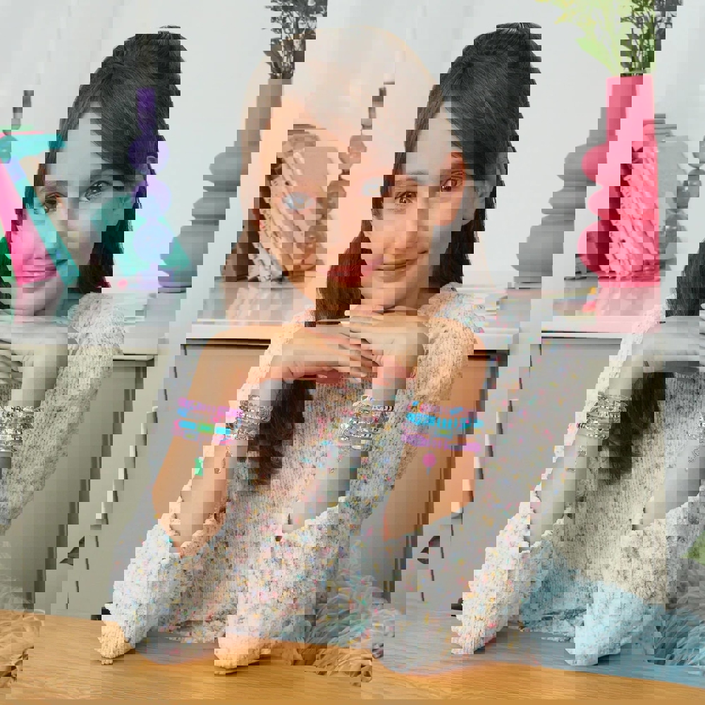 Make It Real 1758MR Shrink Magic Candy Shop არის უნიკალური და სახალისო სამაჯურების ასაწყობი ნაკრები, რომელიც შთააგონებს ბავშვებს თავიანთი კრეატიული იდეების გამოხატვაში. კომპლექტი მოიცავს ფერად დეკორაციებს, სამაჯურებსა და „შრინკ“ პლასტმასის ელემენტებს, რომლებიც აძლევს შესაძლებლობას შექმნან თავისებური და ორიგინალური სამაჯურები ტკბილეულის თემატიკაზე. ასაწყობი პროცესის შემდეგ, ნაკრები გარდაიქმნება უნიკალურ სამკაულებად, რაც შესანიშნავია როგორც ყოველდღიური ტარებისთვის, ასევე მეგობრებთან გასაზიარებლად. Make It Real Shrink Magic Candy Shop არის იდეალური საჩუქარი, რომელიც ბავშვების შემოქმედებით უნარებს ახალ დონეზე აიყვანს.
