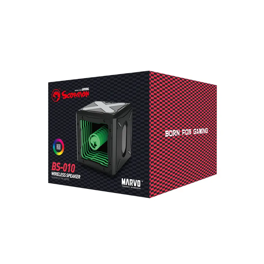 MARVO BS-010 პორტატული Bluetooth დინამიკი აერთიანებს მძლავრ ხმის სისტემას და ლამაზ დიზაინს. მისი 5 ვატიანი სიმძლავრე და 63 მმ დრაივერი უზრუნველყოფს მაღალხარისხიან ხმის გადაცემას. 3D LED განათება ქმნის უნიკალურ ვიზუალურ ეფექტს, რომელიც შეგიძლიათ მოარგოთ მუსიკის რიტმს ან თქვენს განწყობას.
