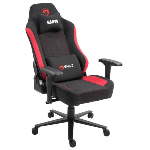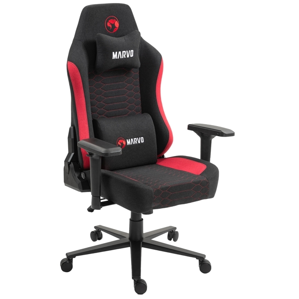 Marvo CH-178 KAHNRED სათამაშო სავარძელი შექმნილია მაქსიმალური კომფორტისთვის გეიმინგსა და გრაფიკულ სამუშაოებში. 4D რეგულირებადი ხელჩოქები წმინდა და ზუსტ პოზიციონირებას გვაძლევს; 100 მმ ღაზის სისტემა სწრაფ და უსაფრთხო რეგულირებას. საზურგე მოჭიქულია მეხსიერების ქაფით, რომელიც სხეულზე ადაპტირდება და უზრუნველყოფს სათანადო საძირკველ მხარდაჭერას. მკვრივი ფენოვანი ფოთლოვანი ქსოვილის საფარი, ჟანგისმტვერი და მოსახერხებელი, ამავე დროს მძლავრი ანტიბაქტერიული დამუშავება — იდეალურია გრძელ სესიებზე. ელეგანტური KahnRed დიზაინი – მკვეთრი წითელი აქცენტით — ასახავს დინამიკურ სტილს. მაქსიმალური დატვირთვა: 150 კგ. მოდელი შეიქმნა ყველასთვის, ვისაც სურს კენჭისყი და ვიზუალური სიამოვნება ერთ პოზიციაში.