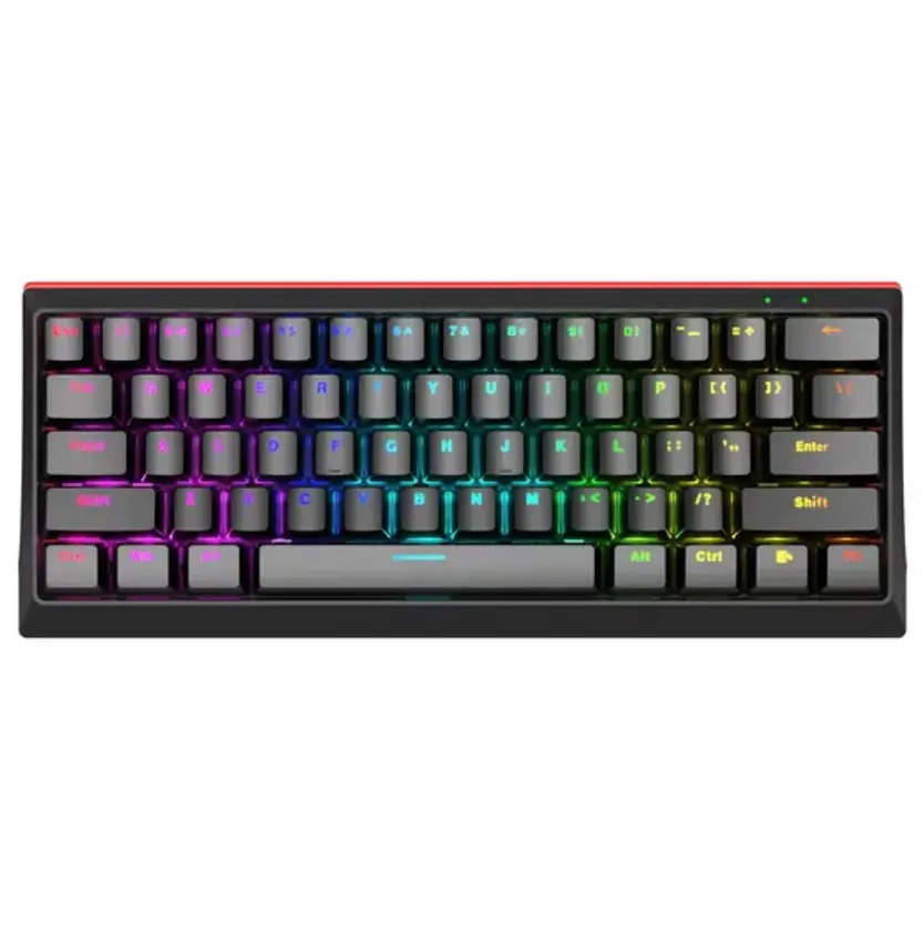 MARVO KG962G EN-B Hecate 61B Black არის მექანიკური კლავიატურა, რომელიც განკუთვნილია გეიმერებისთვის და მათთვის, ვინც აფასებს სისწრაფეს, სიზუსტეს და კომპაქტურობას. მისი 61 ღილაკიანი დიზაინი გამორჩეულია მინიმალიზმით, რაც უზრუნველყოფს კომფორტულ გამოყენებას და ადგილს დაზოგავს სამუშაო ან გეიმინგ სივრცეში. RGB განათების მრავალფეროვანი რეჟიმები საშუალებას გაძლევთ მოირგოთ კლავიატურის ვიზუალი თქვენს გემოვნებაზე. მექანიკური სვიჩები უზრუნველყოფს სწრაფ რეაქციას და გამძლეობას, რაც შესაფერისია ხანგრძლივი გეიმინგ სესიებისთვის. MARVO KG962G Hecate გამოირჩევა ერგონომიული ფორმით, მაღალი ხარისხის მასალებით და Plug-and-Play ფუნქციით, რაც მარტივად გამოსაყენებელს ხდის როგორც გეიმინგისთვის, ისე ყოველდღიური გამოყენებისთვის.