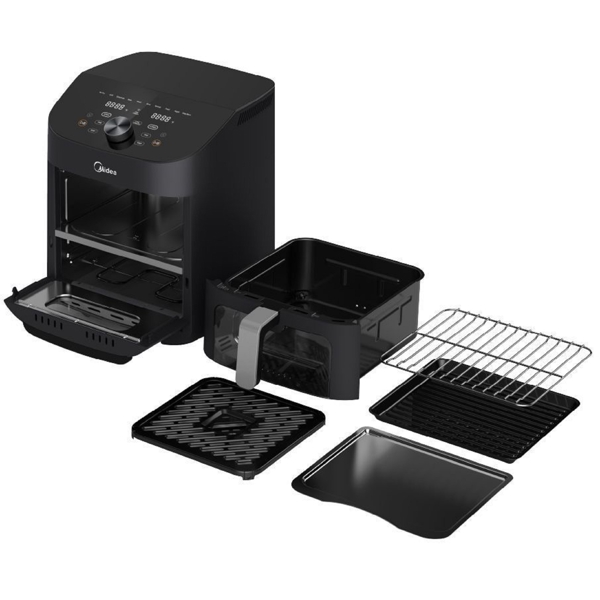 Midea MF-CY110A არის მრავალფუნქციური აეროგრილი, რომელიც განკუთვნილია ჯანსაღი და გემრიელი კერძების მომზადებისთვის. მისი 1850 ვატიანი სიმძლავრე და 11 ლიტრიანი მოცულობა საშუალებას გაძლევთ სწრაფად და ეფექტურად მოამზადოთ კერძები მთელი ოჯახისთვის. აეროგრილი იყენებს ცხობის უნიკალურ ტექნოლოგიას, რომელიც ამცირებს ცხიმის გამოყენებას, რაც თქვენს კერძებს უფრო ჯანსაღს ხდის. მოწყობილობა აღჭურვილია ციფრული მართვის პანელით, მრავალფუნქციური პროგრამებით და ტემპერატურის რეგულირების შესაძლებლობით. მისი ელეგანტური შავი დიზაინი იდეალურად შეეფერება თანამედროვე სამზარეულოს ინტერიერს.