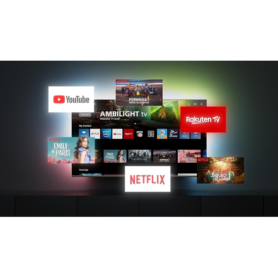- SmartTV აპლიკაციები: YouTube, Philips store, Netflix, Amazon Prime Video