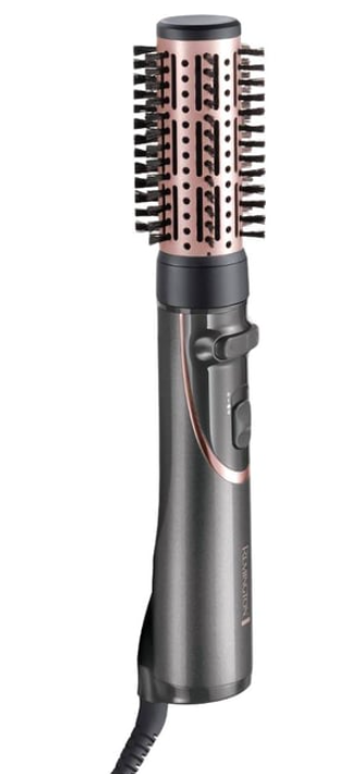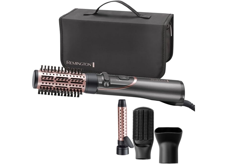 Remington AS8606 E51 Curl & Straight Confidence Rotating Hot Air Styler გთავაზობთ მრავალფუნქციურ სტილიზაციას, რომელიც აერთიანებს გაშრობასა და ვარცხნილობის შექმნას ერთ მოწყობილობაში. კომპლექტში შედის 30 მმ მბრუნავი ცხელი ჰაერის ტონგი, 40 მმ მბრუნავი რბილი ჯაგრისი, ბრტყელი ჯაგრისი და კონცენტრატორი, რაც საშუალებას გაძლევთ შექმნათ მოცულობითი კულულები, გლუვი ვარცხნილობები და ბუნებრივი ტალღები. მბრუნავი სისტემა ორიენტირებულია მარტივ და კომფორტულ გამოყენებაზე, რაც უზრუნველყოფს ვარცხნილობის სიმეტრიულობას ორივე მხარეს. კერამიკული საფარი, გამდიდრებული ტურმალინით, ამცირებს სტატიკურ ელექტრობას და იცავს თმას გადახურებისგან. იონური კონდიციონერი უზრუნველყოფს თმის ბზინვარებას და გლუვობას. მოწყობილობა მუშაობს 800 ვატზე და გთავაზობთ 2 სიჩქარესა და ტემპერატურის რეჟიმს, ასევე ცივი ჰაერის ნაკადს ვარცხნილობის ფიქსაციისთვის. მოხსნადი ფილტრი და მბრუნავი კაბელი უზრუნველყოფს მარტივ წმენდასა და კომფორტულ გამოყენებას. კომპლექტში შედის ელეგანტური შესანახი ჩანთა.