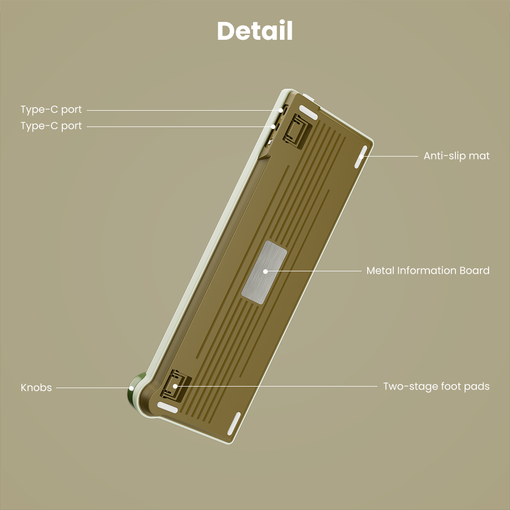 კლავიატურა Royal Kludge RK N99 RGB არის მრავალფუნქციური და ელეგანტური მექანიკური კლავიატურა, რომელიც აერთიანებს სტილს, სანდოობასა და კომფორტს. იგი აღჭურვილია Cream Switch-ებით, რომლებიც გამოირჩევა რბილი და მწყობრი რეაგირებით, რაც შესანიშნავია როგორც გეიმინგისთვის, ისე ხანგრძლივი ტექსტურ მუშაობისთვის. Hot Swappable ტექნოლოგია გაძლევთ საშუალებას მარტივად შეცვალოთ ქისვები ინსტრუმენტების გარეშე. RGB განათება მრავალფეროვანი რეჟიმებით ქმნის უნიკალურ ატმოსფეროს და პერსონალიზაციის შესაძლებლობას. მრავალრეჟიმიანი კავშირი – USB, Bluetooth და 2.4GHz – უზრუნველყოფს სტაბილურ და მოქნილ გამოყენებას სხვადასხვა მოწყობილობებთან. Palm Green ფერის დახვეწილი დიზაინი მას განსაკუთრებულ იერს ანიჭებს და იდეალურად ერწყმის როგორც თანამედროვე, ისე კლასიკურ სამუშაო სივრცეს. კომპაქტური ფორმატი, გამძლე კონსტრუქცია და ენერგოეფექტურობა Royal Kludge RK N99-ს აქცევს იდეალურ არჩევანად მათთვის, ვინც ეძებს მაღალხარისხიან, პრაქტიკულ და სტილურ კლავიატურას.