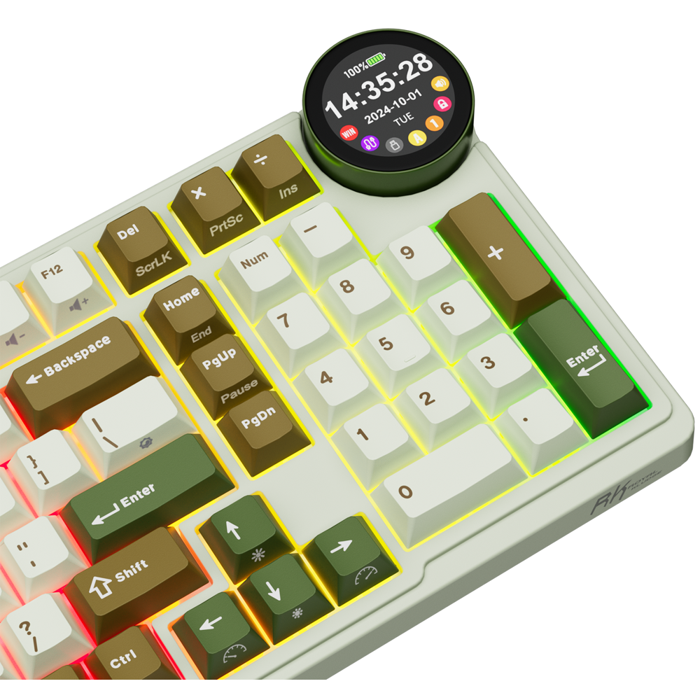 კლავიატურა Royal Kludge RK N99 RGB Mechanical Keyboard, Cream Switch, Hot Swappable, Wireless, USB, Bluetooth, 2.4GHz, Palm Green