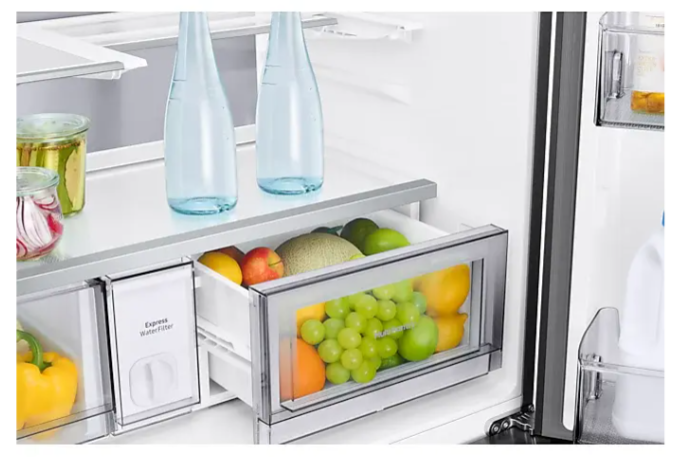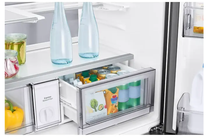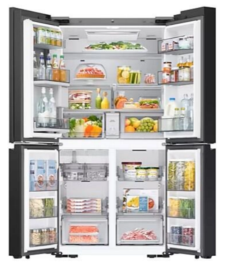 Samsung RM90F67C1WWRFS ქვედა ქვედა საფ ამშრალი მაცივარი – მინიმალისტური დიზაინით, სუფთა თეთრად, ზომები 1853×912×731 მმ. 654 ლ მოცულობა (399 ლ მაცივარი + 255 ლ საყინულე), ორი ნახევრად ღრმა უჯრით, ოთხი მინის თარო, ფილტრი უსაფრთხო სუნის კონტროლით და ფართო LED განათებით. AI Home 9” სენსორული ეკრანი საშუალებას გაძლევთ მართოთ ტემპერატურა, რეცეპტები და სხვა ჭკვიანი ფუნქციები Bixby–თ. AI ინვერტორი მატარებელი უზრუნველყოფს ეკონომიურ მუშაობასა და 35 dBA ხმაურის დონეს. ელეგანტური recessed სახელურები და ავტომატური „Auto Open Door“ უზრუნველყოფს მაქსიმალურ კომფორტსა და თანამედროვე ინტეგრაციას. R‑600a გაგრილების გაზი და ჰიბრიდული სისტემა ინარჩუნებს ტემპერატურას, ენერგოეფექტურობა E კლასი.