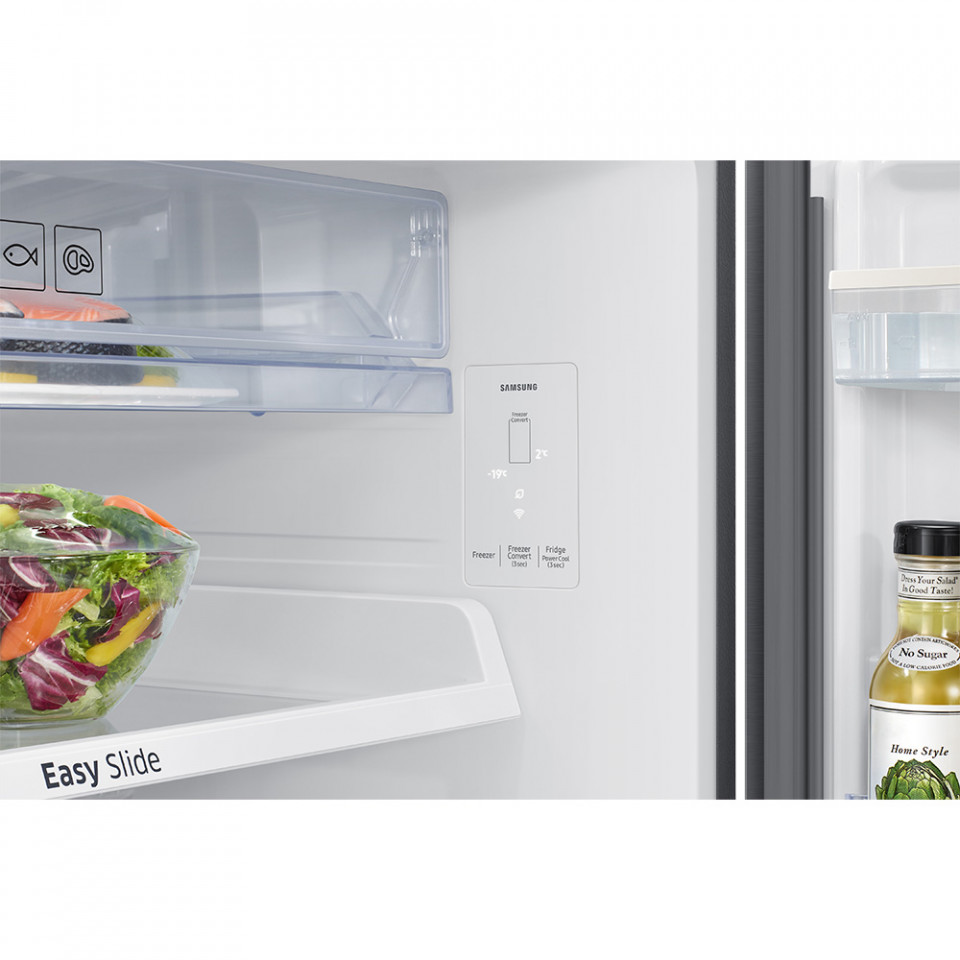მაცივრის შიდა სივრცე ორგანიზებულია მოსახერხებლად: სამაცივრე განყოფილებაში არის 3 თარო, 2 ხილ-ბოსტნეულის უჯრა და 5 კარის თარო, ხოლო საყინულეში – 3 უჯრა. მაცივრის ზომებია 2030 მმ სიმაღლეში, 759 მმ სიგანეში და 711 მმ სიღრმეში, რაც საშუალებას იძლევა მისი განთავსება სხვადასხვა სივრცეში. ენერგომოხმარების კლასი A++ უზრუნველყოფს ეკონომიურ მუშაობას, ხოლო 35 დბ ხმაურის დონე – მშვიდ გარემოს. მაცივარი ასევე აღჭურვილია კლიმატკონტროლის კლასებით SN, N, ST, T, რაც უზრუნველყოფს ოპტიმალურ ტემპერატურულ რეჟიმებს სხვადასხვა კლიმატურ პირობებში.