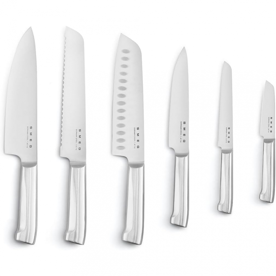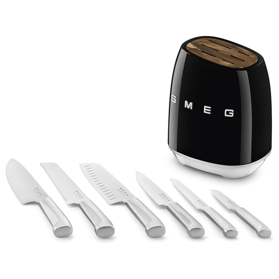 დანების კომპლექტი SMEG KBSF02BL განსახიერებაა სტილისა და ფუნქციონალურობის. იტალიური დიზაინით შთაგონებული კომპლექტი მოიცავს 6 ძირითად დანას: შეფის, პურის, დაჭრის, სარეცხი, ბოსტნეულის და უნივერსალური დანები, რომლებიც დამზადებულია მაღალი ხარისხის გერმანული უჟანგავი ფოლადისგან. დანები ბასრი პირებით გამოირჩევა გამძლეობითა და სიზუსტით, რაც იდეალურია როგორც ყოველდღიური გამოყენებისთვის, ისე პროფესიონალური სამზარეულოსთვის. გლუვი შავი დიზაინი და სტაბილური ხის სადგამი ქმნის დახვეწილ ელემენტს თქვენი სამზარეულოს ინტერიერისთვის. SMEG-ის ეს კომპლექტი არა მხოლოდ პრაქტიკული არჩევანია, არამედ სტილის და ხარისხის სიმბოლოც.