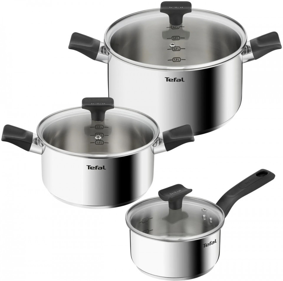 ქვაბების ნაკრები TEFAL B925S655 Delicious აერთიანებს ხარისხსა და ფუნქციონალურობას, რაც იდეალურია ყოველდღიური სამზარეულოს ამოცანებისთვის. ნაკრები შედგება სამი ქვაბისგან (16 სმ, 20 სმ და 24 სმ დიამეტრით) და შესაბამისი მინის სახურავებისგან. უჟანგავი ფოლადის მასალა უზრუნველყოფს გამძლეობასა და ხანგრძლივ გამოყენებას. ქვაბები თავსებადია ყველა სახის ქურასთან, მათ შორის ინდუქციურთან, და შესაძლებელია მათი გამოყენება ღუმელში 175°C-მდე. მინის სახურავები არ არის განკუთვნილი ღუმელში გამოყენებისთვის. ქვაბები აღჭურვილია რეზისტენტული სახელურებით და მოსახერხებელი ჩამოსასხმელი კიდეებით, რაც ამარტივებს სითხის გადაღვრას. TEFAL B925S655 Delicious არის სანდო და პრაქტიკული არჩევანი თქვენი სამზარეულოსთვის.