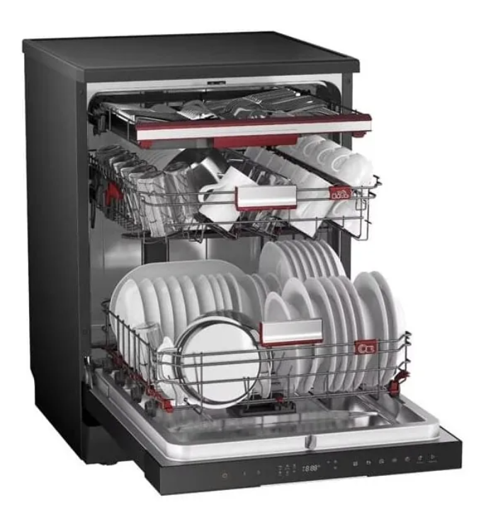 Toshiba DW-10F4(B)-CIS არის თანამედროვე ჭურჭლის სარეცხი მანქანა, რომელიც უზრუნველყოფს სისუფთავეს, ენერგოეფექტურობას და მოხერხებულობას ყოველდღიურ ცხოვრებაში. 10 ნაკრების ტევადობა იდეალურია როგორც საშუალო ოჯახებისთვის, ისე აქტიური სამზარეულოსთვის. მრავალფეროვანი სარეცხი პროგრამები გაძლევთ საშუალებას შეარჩიოთ საუკეთესო რეჟიმი სხვადასხვა ტიპის ჭურჭლისთვის – იქნება ეს ნაზი ჭიქები, მძიმე ქვაბები თუ ყოველდღიური თეფშები. ინვერტორული ძრავი უზრუნველყოფს ჩუმ და ეკონომიურ მუშაობას, რაც ზრდის მოწყობილობის გამძლეობასა და ენერგოეფექტურობას. სპეციალური სენსორები აკონტროლებენ წყლის რაოდენობას და ტემპერატურას, რათა გარეცხვა იყოს მაქსიმალურად ეფექტური. შავი ფერის ელეგანტური დიზაინი იდეალურად ერგება თანამედროვე სამზარეულოს ინტერიერს. Toshiba DW-10F4(B)-CIS აერთიანებს მაღალ ტექნოლოგიებს, სივრცის დაზოგვასა და მარტივ მართვას, რაც მას აქცევს სანდო და ფუნქციურ არჩევანად თქვენი სახლისთვის.