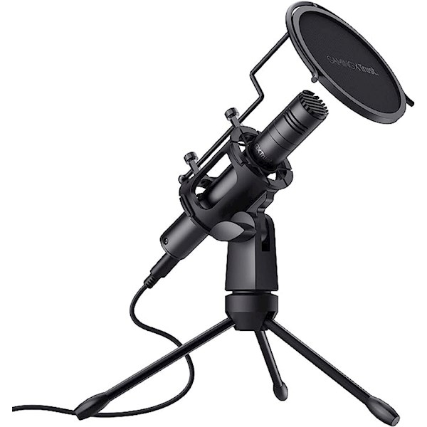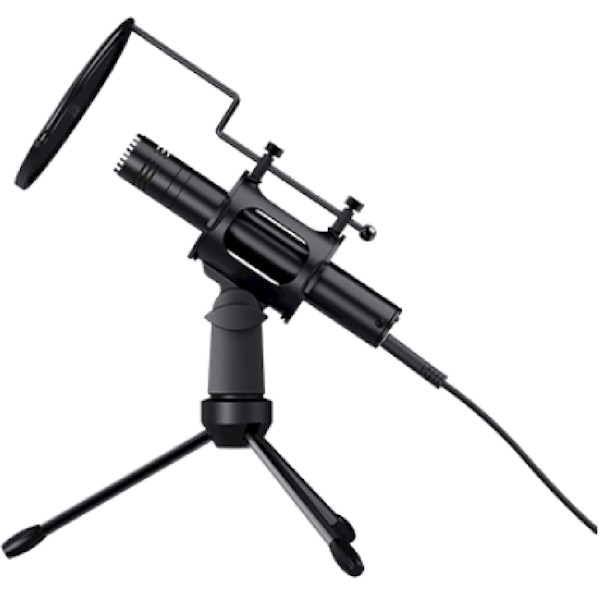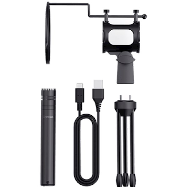 - მიკროფონი, პოპ ფილტრი, სამფეხა, 1.8 მ USB-C სადენი