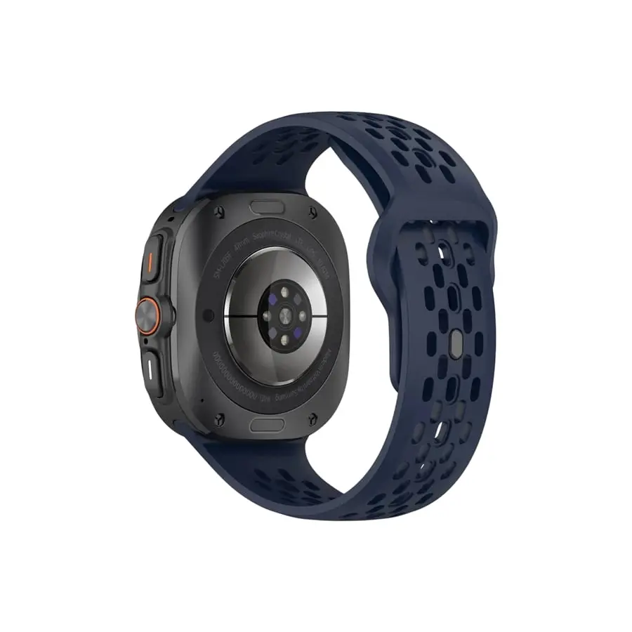 TVC-ის Fluororubber სამაჯური Midnight Blue ფერში განკუთვნილია Samsung Galaxy Watch Ultra 47mm-ისთვის და წარმოადგენს გამძლე, ჰაერგამტარ და ელეგანტურ აქსესუარს. დამზადებულია მაღალი ხარისხის ფტორრეზინისგან, რომელიც გამორჩეულია სიძლიერით, ელასტიურობითა და ჰიპოალერგიული თვისებებით. სამაჯურზე განლაგებული მრავლობითი ხვრელები უზრუნველყოფს ვენტილაციას და ზრდის ტარების კომფორტს ინტენსიური ფიზიკური აქტივობის დროს. კლასიკური Midnight Blue ფერი კი შერწყმულია როგორც სპორტულ, ისე ყოველდღიურ სტილთან. სამაჯური მარტივად რეგულირდება მაჯის ზომის მიხედვით და მყარად ფიქსირდება. იდეალურია მათთვის, ვინც ეძებს გამძლეობასა და დახვეწილ სტილს ერთ აქსესუარში.