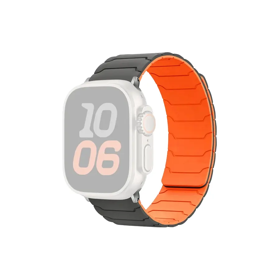სმარტ საათის სამაჯური TVC Silicone Strap for Apple Watch Series 10 Ultra 9 8 7 SE 6 5 4 3 2 1 46mm 49mm 45mm 44mm 42mm Magnetic Band - Grey+Orange