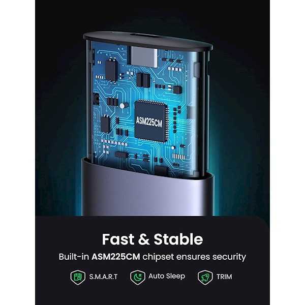 გარე მყარი დისკის ქეისი UGREEN 10903 M.2 SATA NGFF SSD Enclosure არის მაღალი ხარისხის მოწყობილობა, რომელიც საშუალებას გაძლევთ M.2 SATA NGFF SSD დისკი გადააქციოთ გარე მყარ დისკად. მისი USB 3.1 Gen 2 ინტერფეისი უზრუნველყოფს 6Gbps სიჩქარით მონაცემთა სწრაფ და სტაბილურ გადაცემას, ხოლო UASP პროტოკოლი კიდევ უფრო ზრდის მუშაობის ეფექტურობას. ალუმინის კომპაქტური და გამძლე კონსტრუქცია უზრუნველყოფს SSD-ის დაცვას დაზიანებებისგან და სიცხის ოპტიმალურ განაწილებას. მოწყობილობა თავსებადია B-Key SSD დისკებთან და იდეალურია როგორც ყოველდღიური ფაილების მენეჯმენტისთვის, ასევე პროფესიონალური გამოყენებისთვის. ეს ქეისი მარტივად სატარებელია და განკუთვნილია მოქნილობისა და მობილურობისთვის.