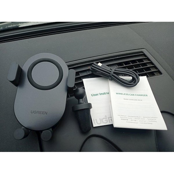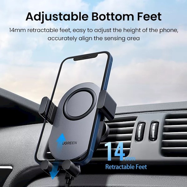 მობილურის დამტენი UGREEN CD256 (40118) Wireless Car Charger, 15W Auto Induction Phone Holder, Black