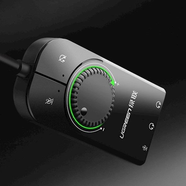 ხმის ბარათი UGREEN CM129 (40964) USB External Stereo Sound, card 3,5 mm mini jack with volume control Adapter 15cm (Black)