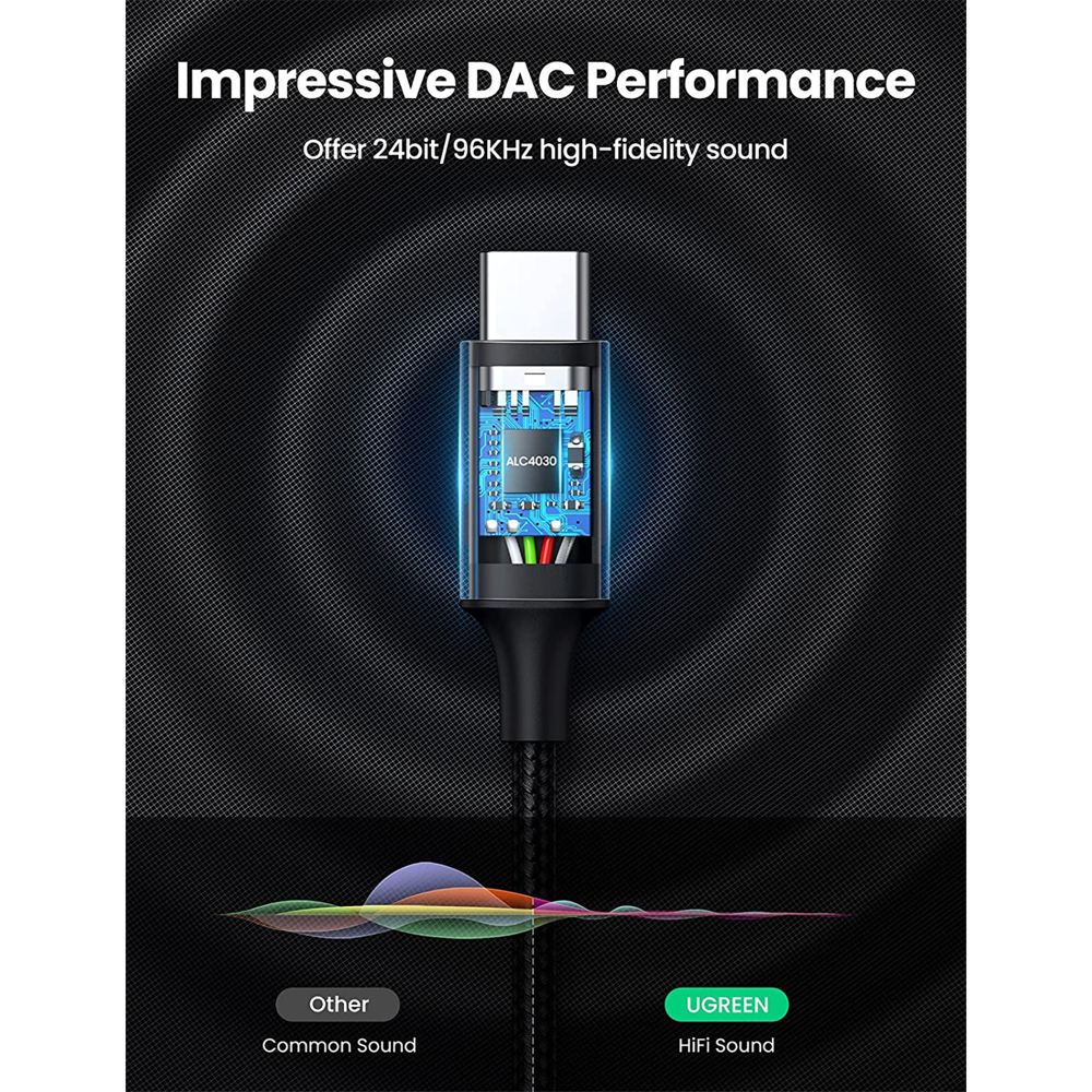 - გაუმჯობესებული DAC ჩიპით, Type-C-დან Aux კაბელს აქვს 24