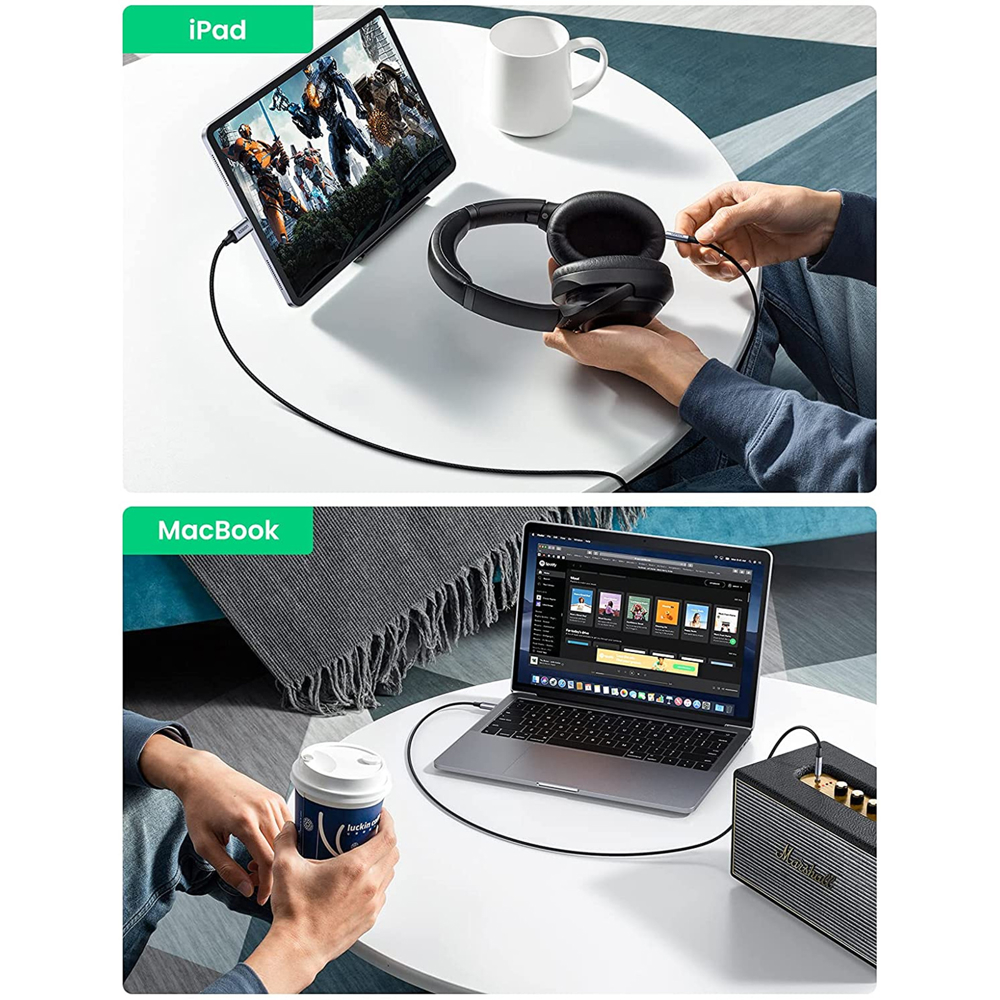 აუდიო ადაპტერი UGREEN CM450 (20192), Type-C Male To 3.5mm Male Audio Cable With Chip, 1m, Black/Grey