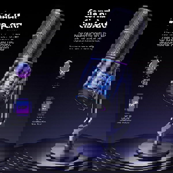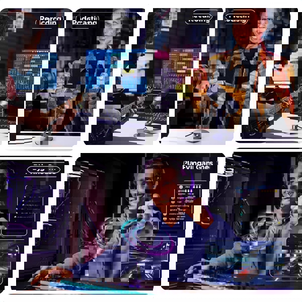UGREEN CM769 არის მრავალფუნქციური მიკროფონი, რომელიც შექმნილია მაღალი ხარისხის ხმის ჩასაწერად როგორც ვიდეოზარებისთვის, ისე სტრიმინგისთვის, ჩანაწერებისთვის ან გეიმინგისთვის. მოწყობილობას აქვს USB კავშირი კომპიუტერთან სწრაფი და მარტივი დაკავშირებისთვის, ასევე 3.5მმ აუდიო ჯეკი ყურსასმენების დასაერთებლად. მიკროფონი აღჭურვილია RGB განათებით, რაც მას ვიზუალურად მიმზიდველს ხდის და იდეალურია თანამედროვე სამუშაო ან გეიმინგ გარემოსთვის. მგრძნობიარე და დაბალხმიანობის მიკროფონი უზრუნველყოფს მკაფიო და სუფთა ხმას. Plug & Play ფუნქცია საშუალებას გაძლევთ გამოიყენოთ მოწყობილობა დამატებითი დრაივერების გარეშე. დიზაინი მყარია და სტაბილური, იდეალურია ყოველდღიური და პროფესიული გამოყენებისთვის.