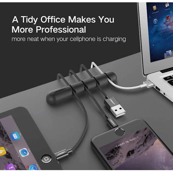 კაბელების მენეჯერი UGREEN LP114 (30762) Cable organizer 2 Pack silicone usb cable winder flexible cable control cable with clips holder for mouse headphones Black