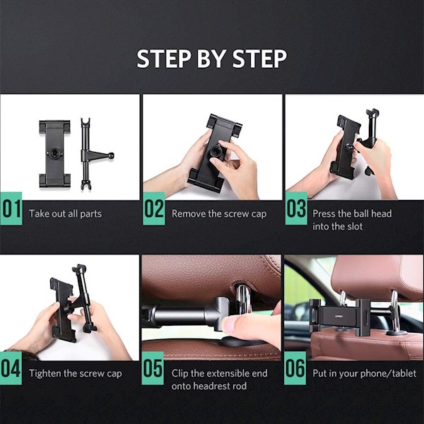 პლანშეტის დამჭერი UGREEN LP160 (60108) Car Headrest Mount Holder, Black