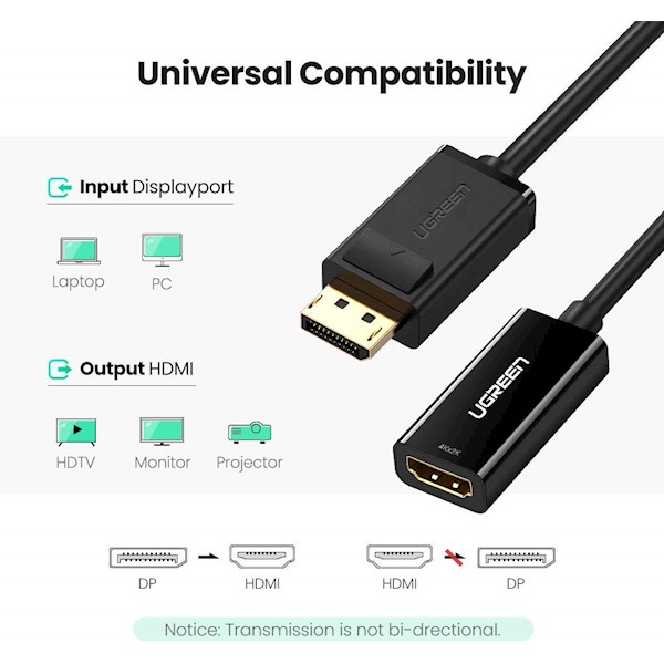 ადაპტერი UGREEN MM137 (40363) DisplayPort to HDMI Female Converter 4K*2K 25cm (Black)