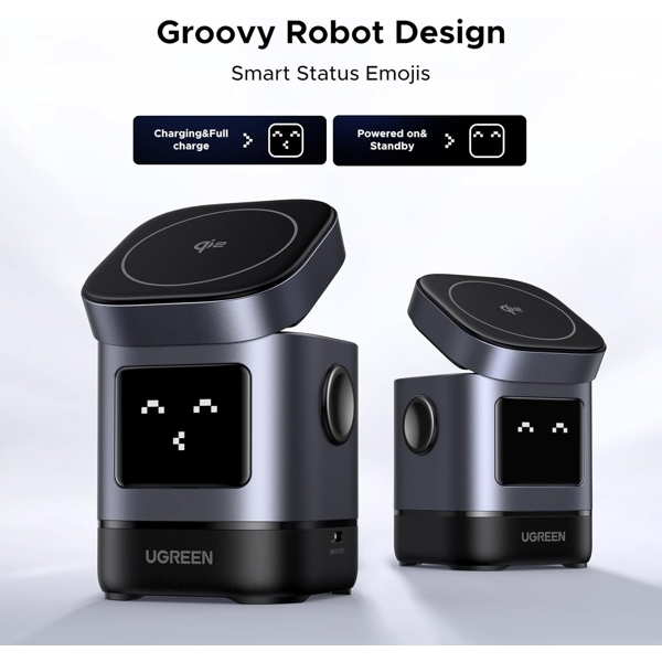 უსადენო დამტენი UGREEN Uno W709 (45775) Qi2, 15W, 2-in-1 Magnetic Wireless Charger, Black/Grey