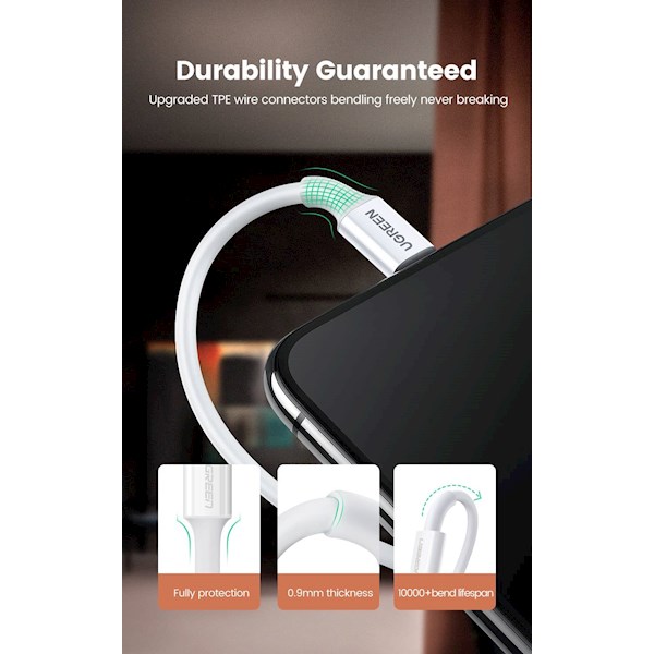 კაბელი UGREEN USB-A Male to Lightning Male Cable Nickel Plating ABS Shell 1m (Black)