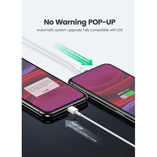 - სერთიფიკატი: Mfi სერთიფიცირებული ჩამონტაჟებული ჩიპსეტით, დამოწმებული Apple-ის კომპანიის მიერ.