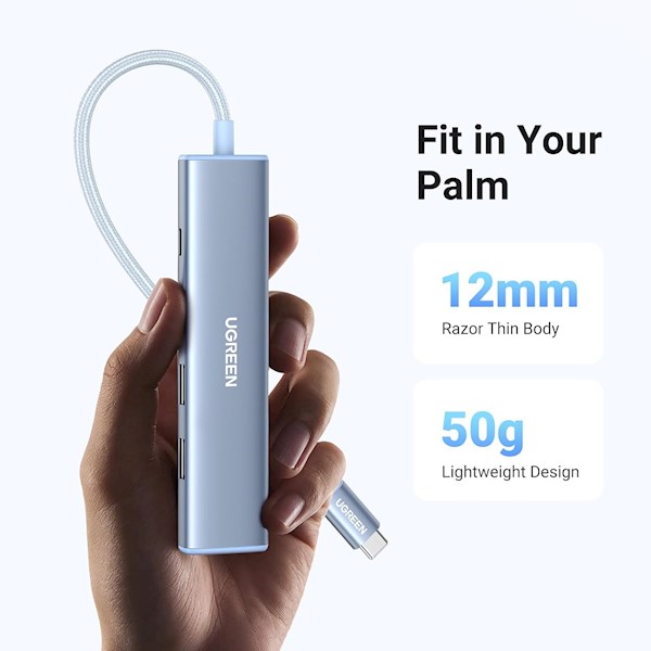 USB-C ჰაბი UGREEN CM478 (35581) არის მძლავრი და მრავალფუნქციური მოწყობილობა, რომელიც დაგეხმარებათ გაზარდოთ თქვენი მოწყობილობების კავშირების შესაძლებლობები. იგი აღჭურვილია USB, USB-C და HDMI პორტებით, რაც საშუალებას გაძლევთ მარტივად და ეფექტურად დაუკავშიროთ სხვადასხვა გაჯეტები. HDMI პორტი უზრუნველყოფს 4K UHD გამოსახულების გადაცემას, იდეალური პრეზენტაციებისთვის ან მულტიმედიური გამოყენებისთვის. USB და USB-C პორტები იძლევა სწრაფი მონაცემების გადაცემისა და დამატებითი მოწყობილობების ერთდროულად შეერთების შესაძლებლობას. მისი კომპაქტური დიზაინი და მიმზიდველი ლურჯი ფერი ქმნის თანამედროვე და დახვეწილ სტილს, რაც შესანიშნავია როგორც სახლისთვის, ასევე ოფისისთვის ან მოგზაურობისთვის.